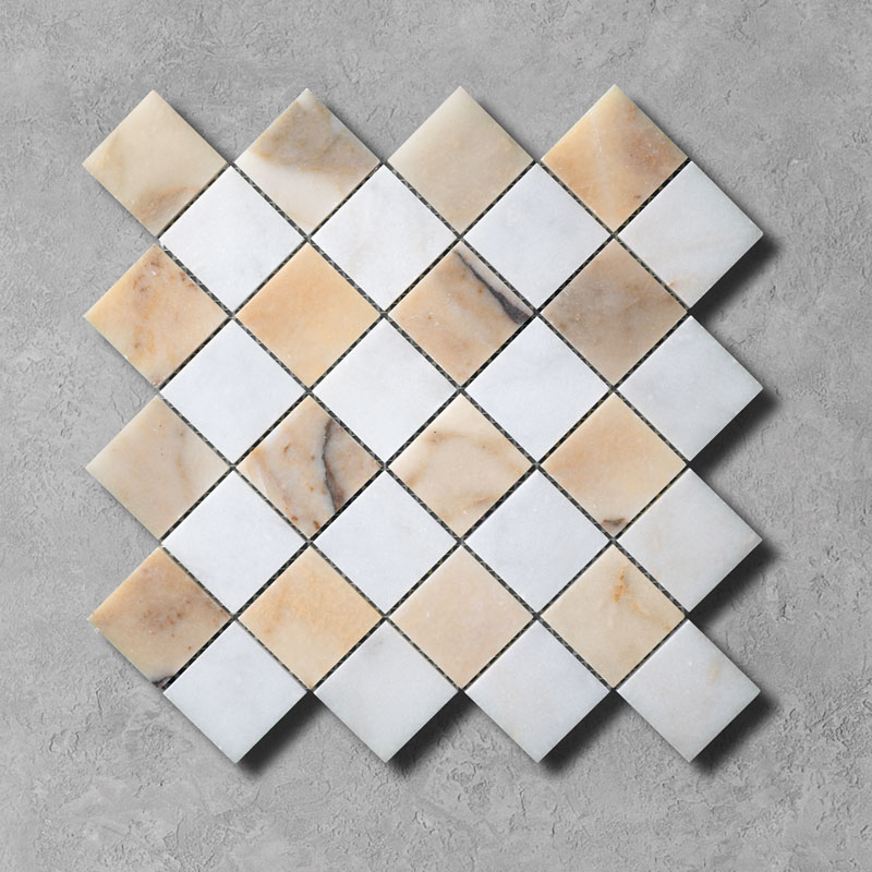 Arabescato Gold Marble Checkerboard Mosaic Tiles