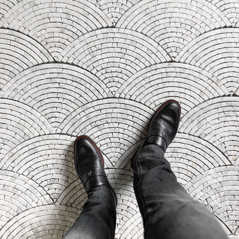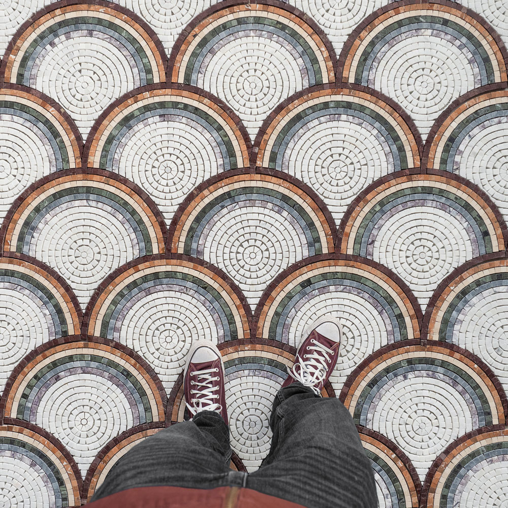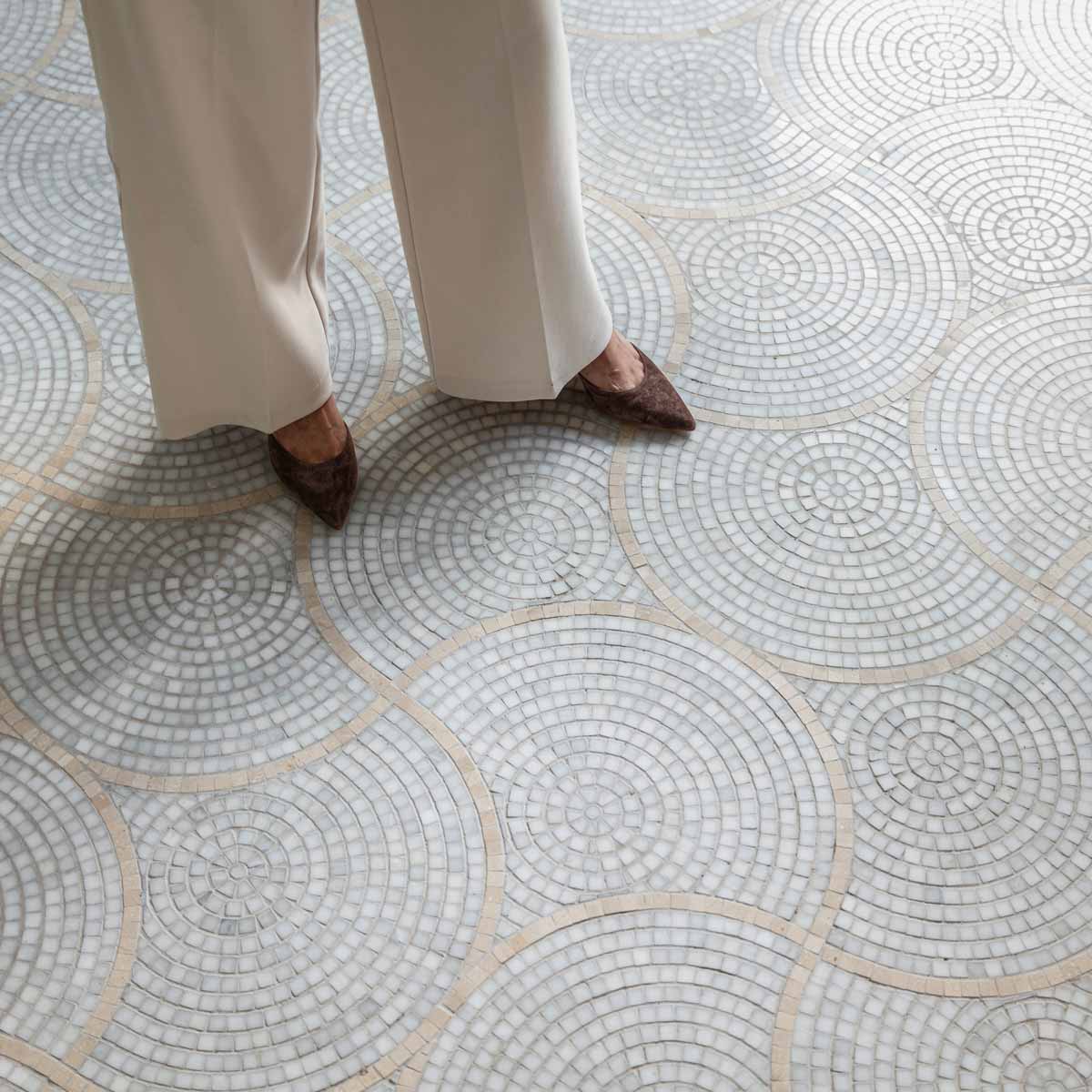 Calacatta & Bluestone Marble Cracked Fan Mosaic