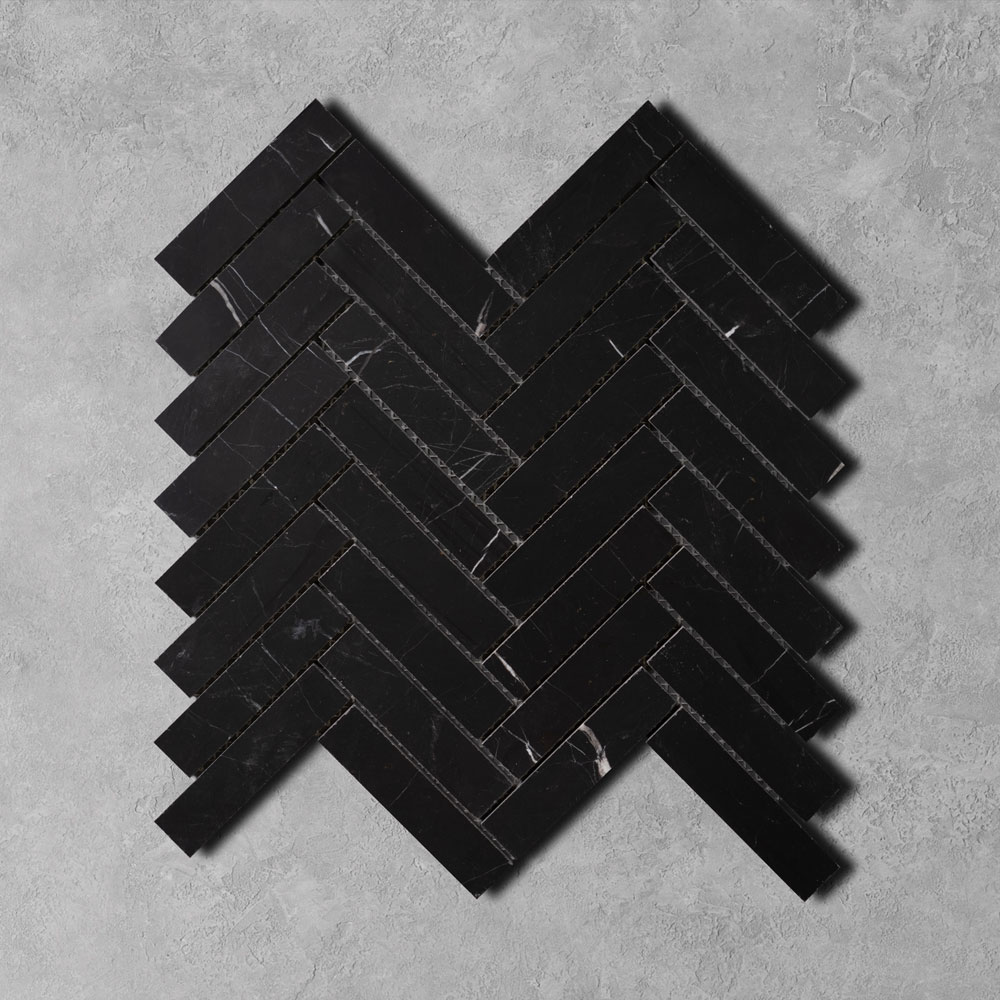 Nero Black Marble Herringbone Mosaic Tiles