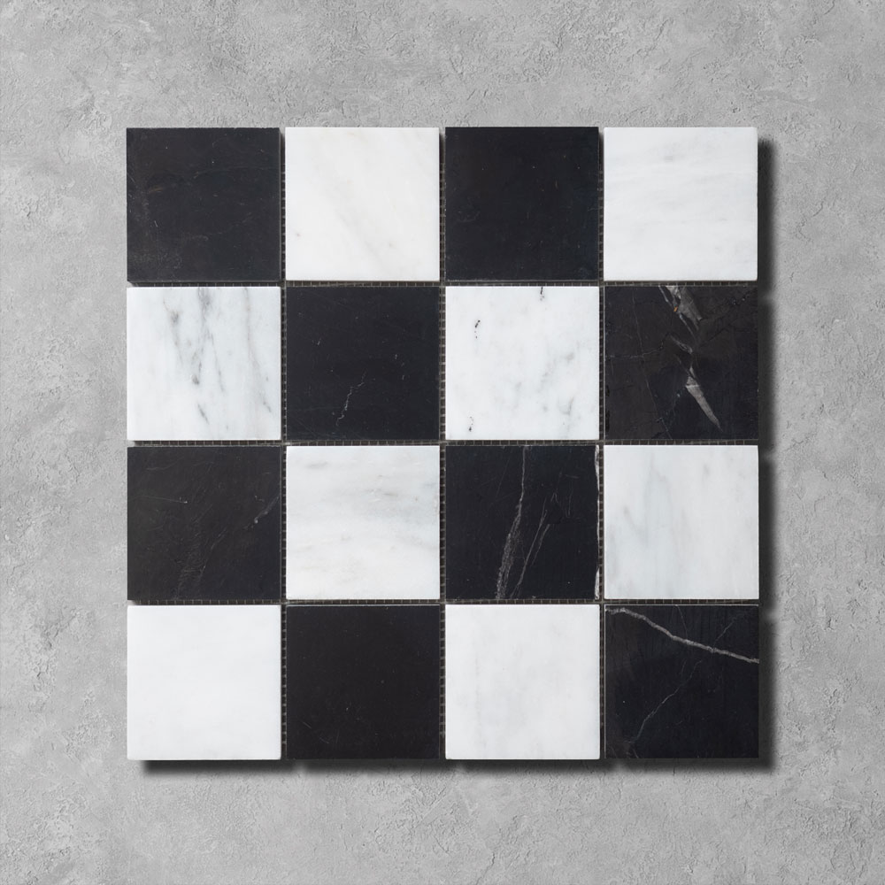 Checkerboard Honed Calacatta & Nero Marquina Marble Tiles