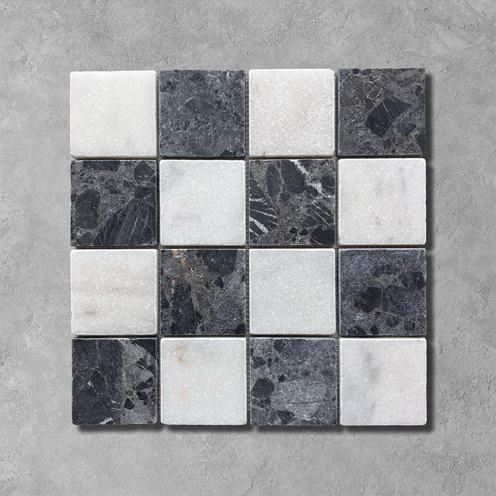 Tumbled Checkerboard Black Emperador & White Marble