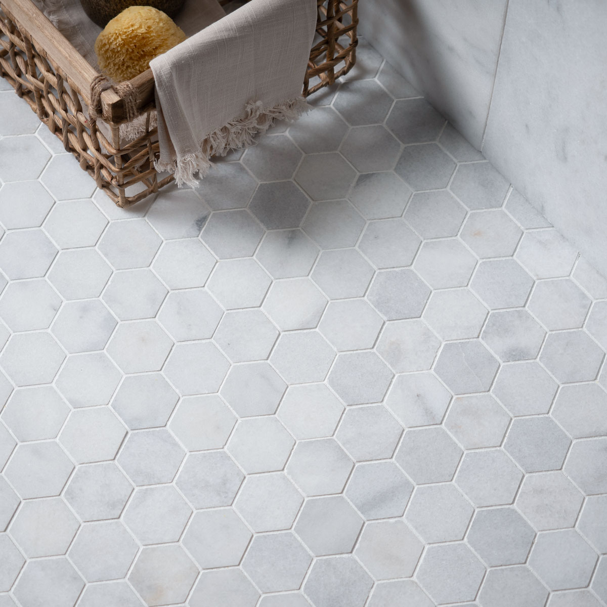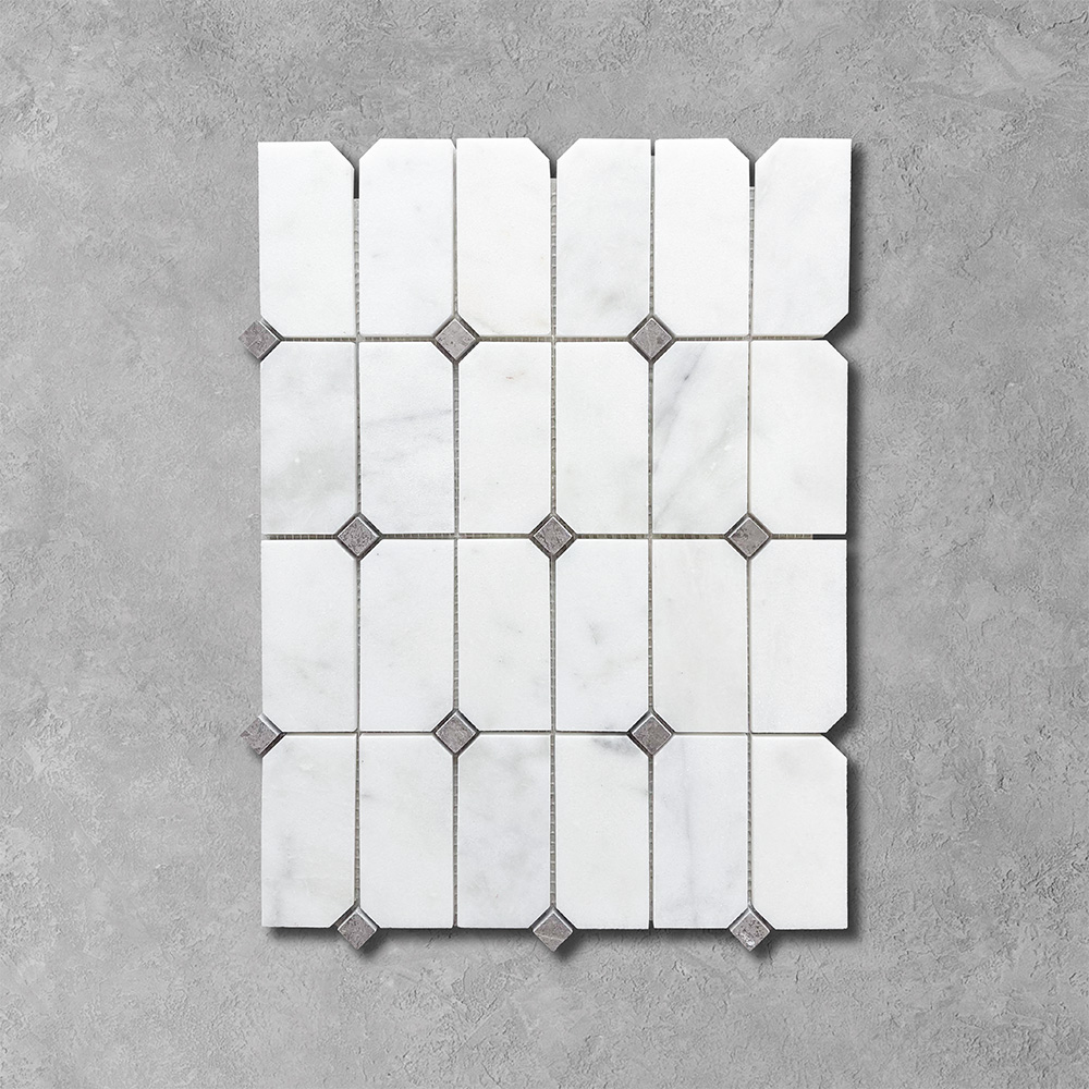 Calacatta white and Pietra Grey Octagon Mosaic Tiles