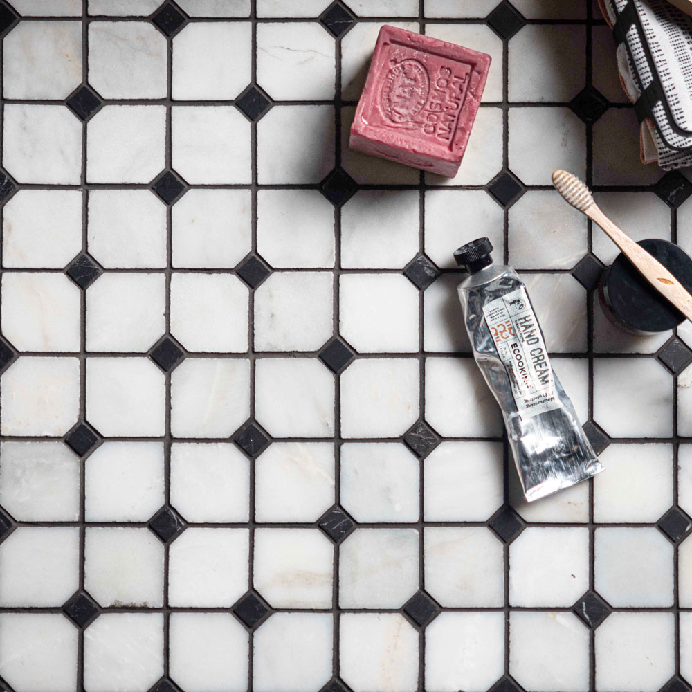 Calacatta Marble Victorian Octagon Mosaic Tiles