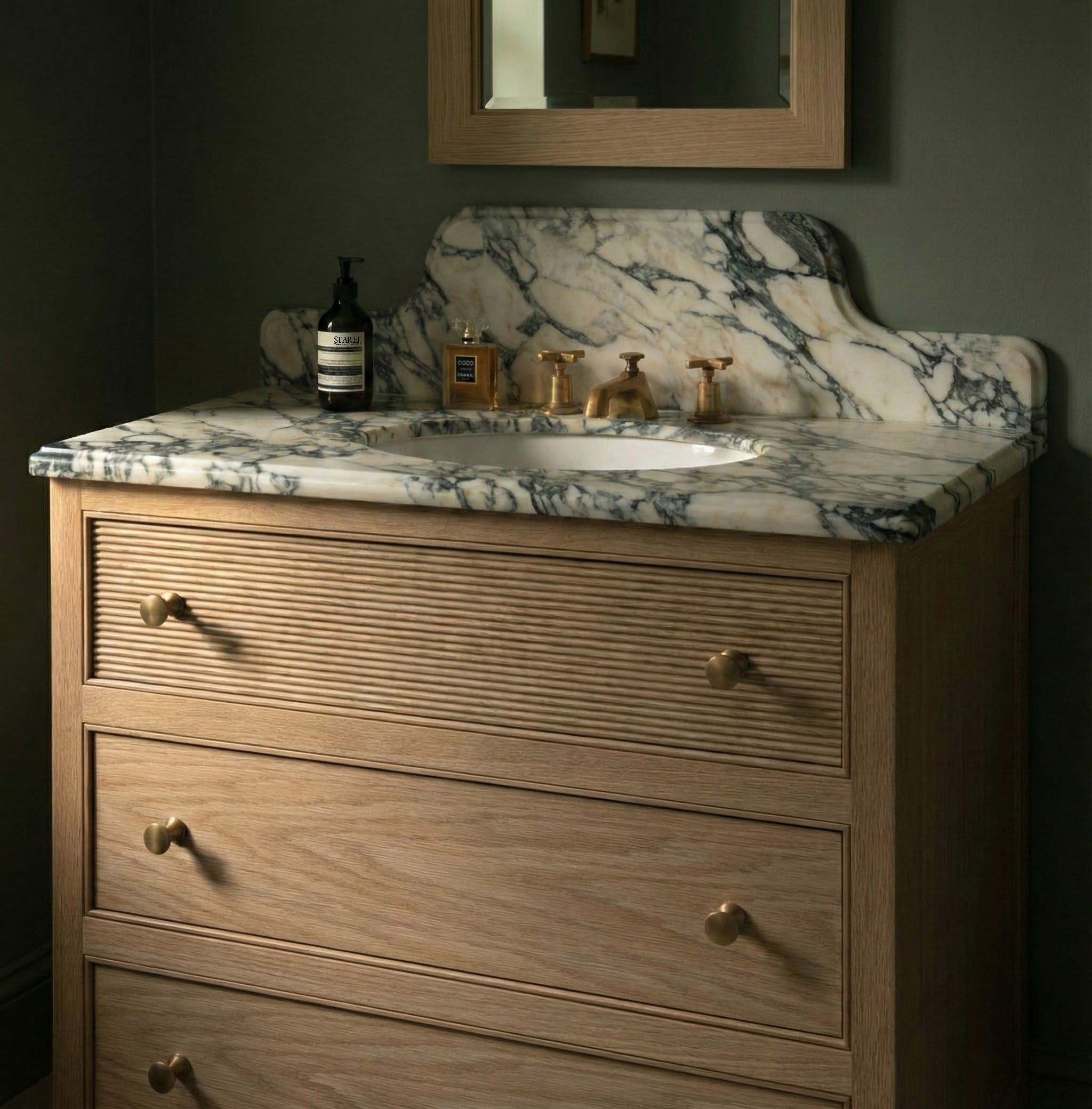 Tuscany Oak Vanity Unit Marble Top 80cm