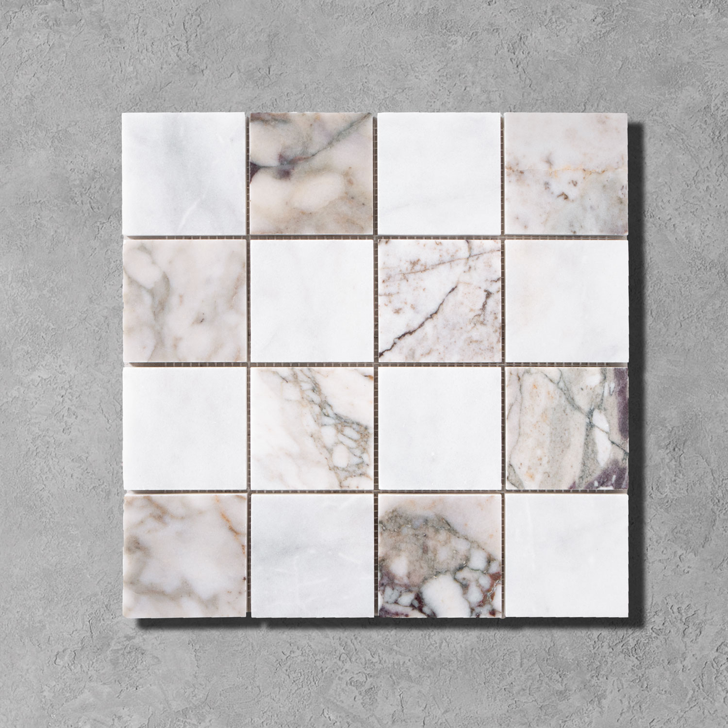 Arabescato Amazon Marble Checkerboard Mosaic Tiles