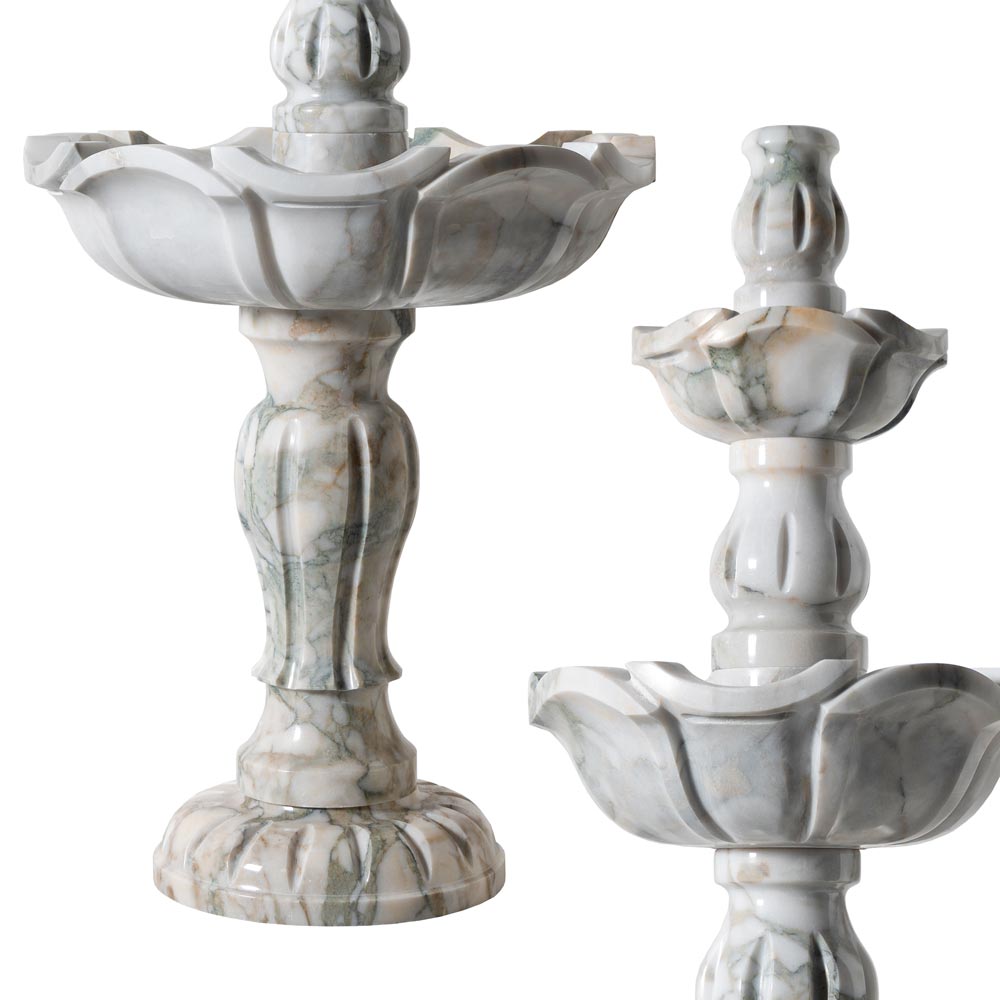 Arabescato Amazon marble features a white marble background with khaki and green veining. Here offered in a decorative fountain form.