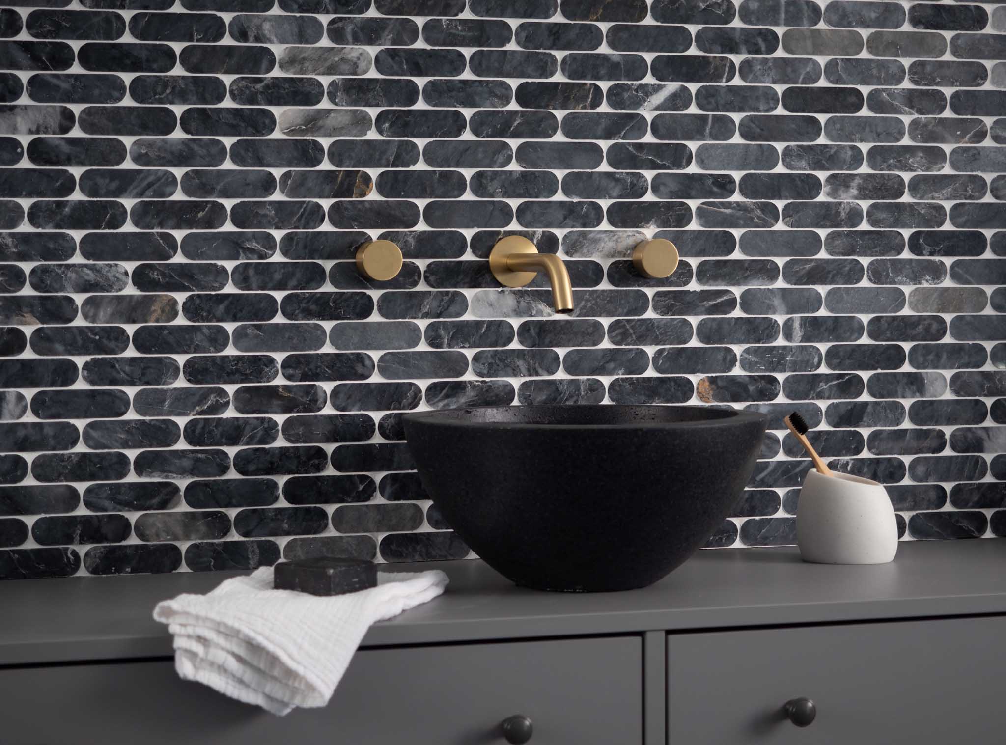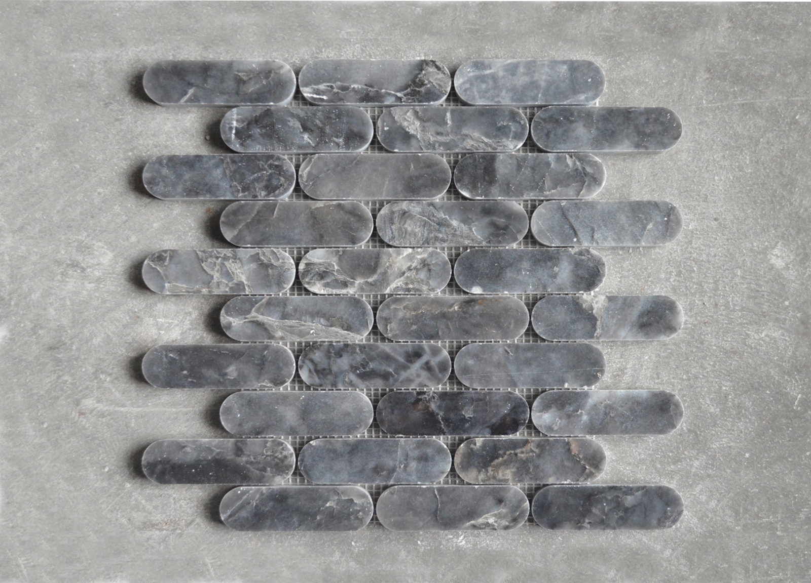 Inspired by modern interiors our new Pill mosaic is truly unique to us. Available in a variety of colours including Calacatta Viola and Ice Grey marble, Pill mosaic is a perfect choice to bring a dynamic look to any room. With deep dark bluish grey cloudy veining and sparkle copper streaks Bluestone is truly extraordinary. Available in a variety of mosaic patterns, tile sizes, finishes, and skirtings. Pill mosaic is suitable for both walls and floors, wet rooms, and underfloor heating. Please note that colours may differ in natural/artificial lighting. Sealing is recommended for all our natural stone products.
