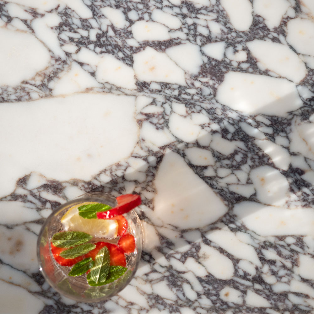 With its wild striking purple and magenta veining pattern on the golden white marble background Arabescato Viola is one of a kind. Now offered in 610x610mm format for seamless walls and floors. Suitable for wet rooms and underfloor heating. Sealing is recommended.