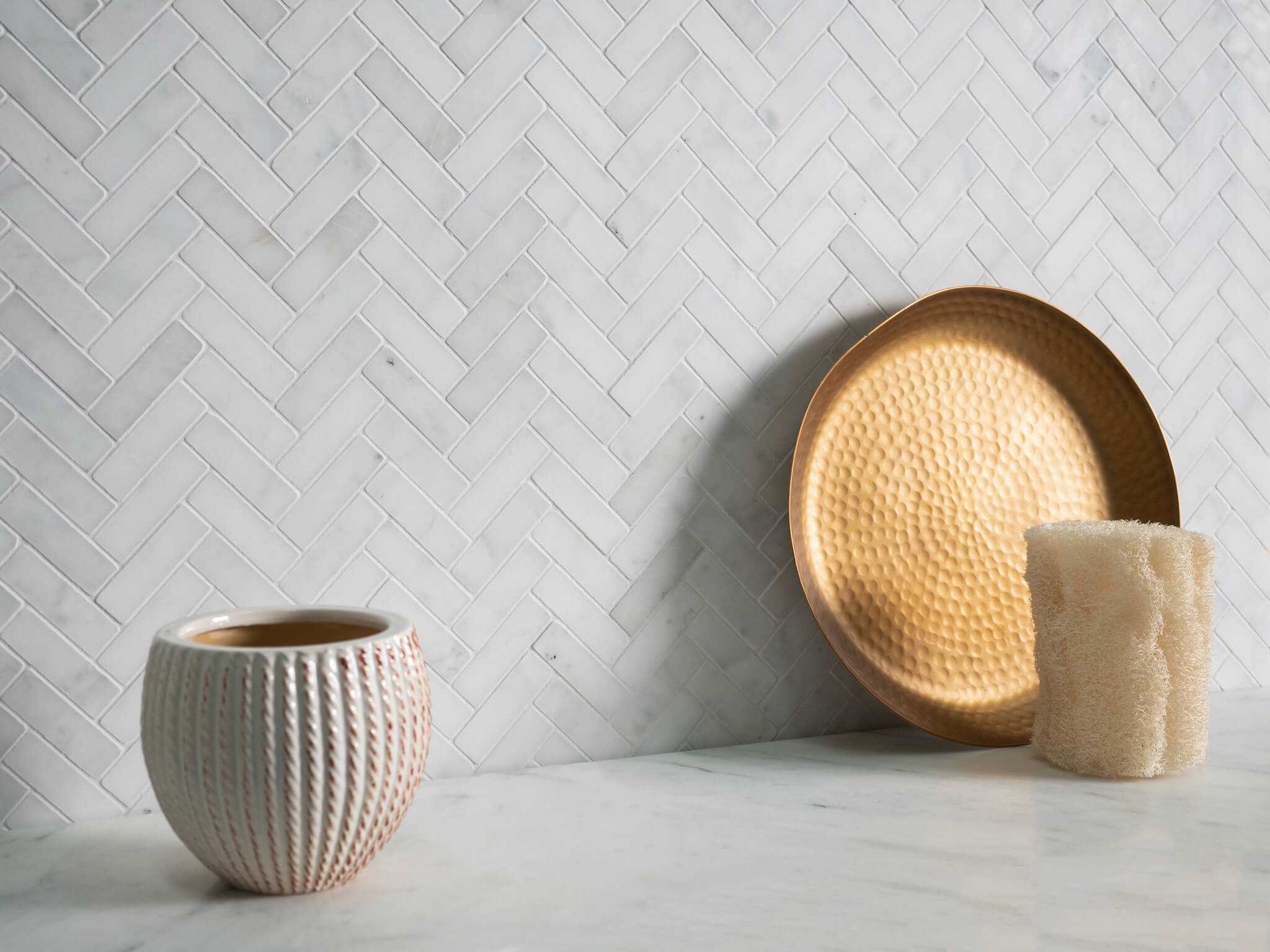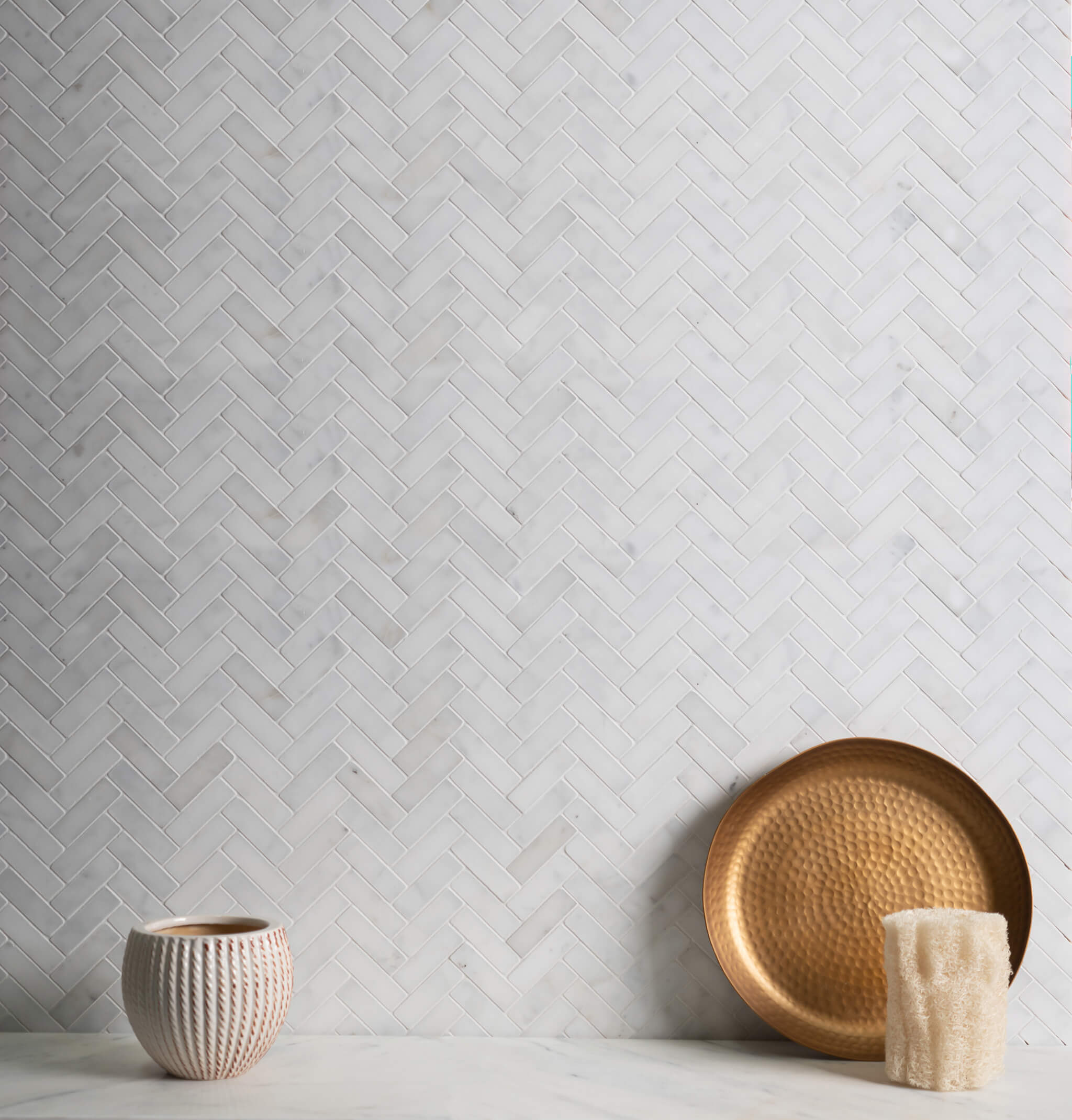 Calacatta White Marble Herringbone Mosaic Tiles