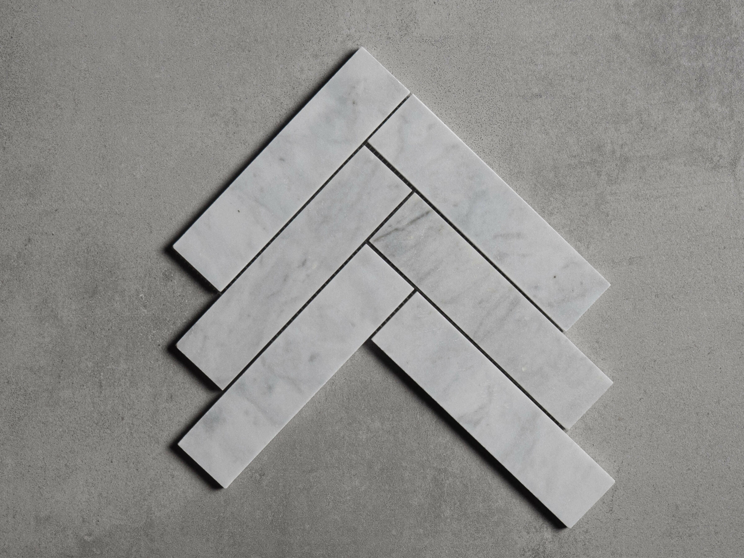Our soft light grey Carrara marble tile, with beautifully crafted yet natural light grey veins running throughout, is offered in large Herringbone mosaic tile format as well. Internal use only. Suitable for walls/floors, bathrooms, wet rooms, and under-floor heating. Including but not limited to use in Clubs/Bars, Restaurants, Lobbies, Hotels, Shops, plus many more. Why not combine our natural stone tiles with our matching mouldings & skirtings. Please note that colours may differ in natural/artificial lighting. Sealing is recommended for all our natural stone products.