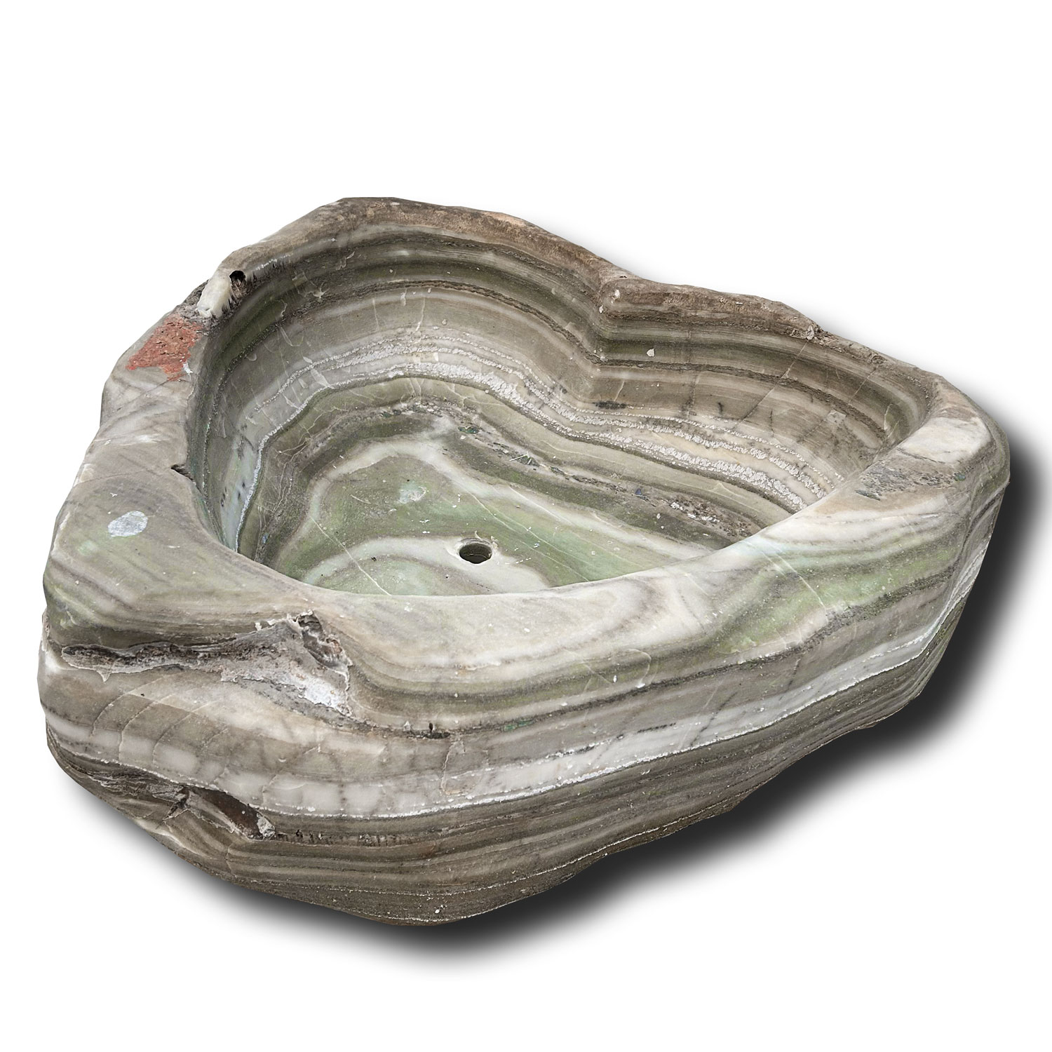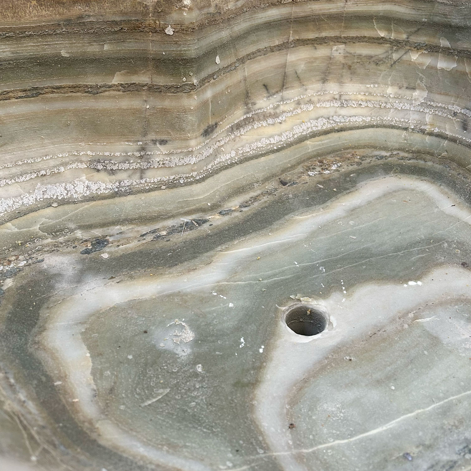 A Green onyx outdoor birdbath is an elegant and natural stone feature, characterized by its rich, swirling shades of green and subtle veining. The durable onyx material makes it perfect for outdoor use, withstanding various weather conditions while maintaining its aesthetic appeal.