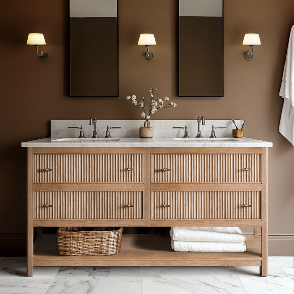The Milano vanity unit is a harmonious fusion of British design and Italian craftsmanship, embodying elegance and functionality. Offered in a double format with two sinks. Available in 4 size options.