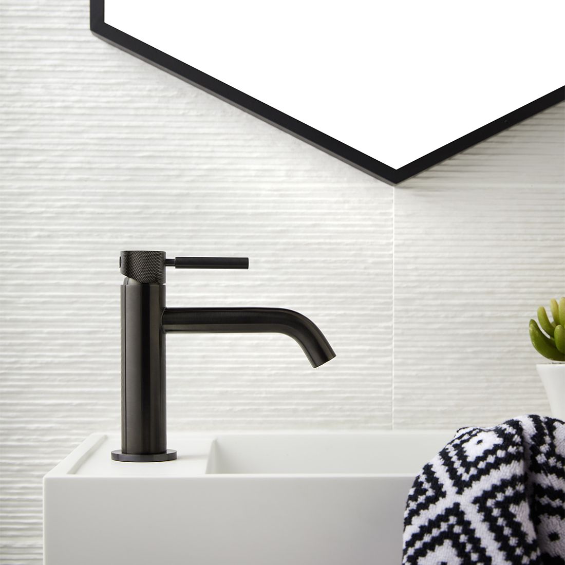 Crafted in a sleek brushed black finish with stylish knurled accents, this slimline mono basin mixer tap is also offered in Black, Gold, Nickel, Chrome, and Bronze.