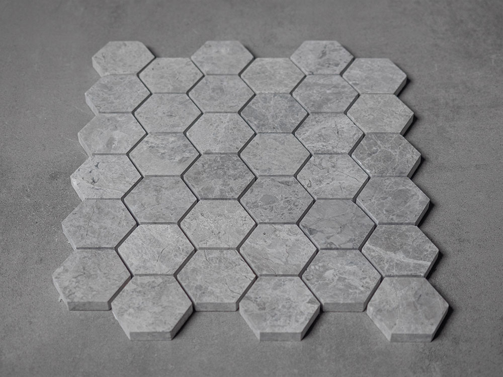 Elegant-looking and famous Tundra grey marble has darker and lighter grey veins and matches with white and black marble tiles beautifully. Hexagon marble mosaic tiles look stylish in bathrooms, wet rooms, kitchen splashback, and other residential and commercial indoor living spaces. Internal use only. Suitable for walls/floors, bathrooms, wet rooms, and under-floor heating. Including but not limited to use in Clubs/Bars, Restaurants, Lobbies, Hotels, Shops, plus many more. Why not combine our natural stone tiles with our matching mouldings & skirtings. Please note that colours may differ in natural/artificial lighting. Sealing is recommended for all our natural stone products.