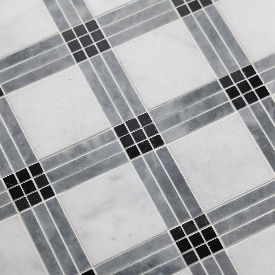 White Marble & Bluestone Plaid Mosaic Tiles