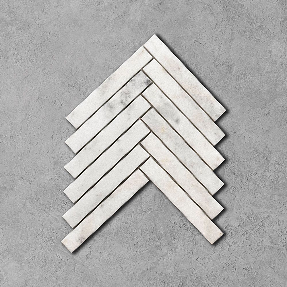 Aegean White Marble Long Herringbone Marble Mosaic