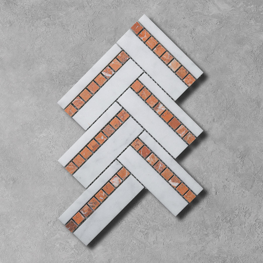 Calacatta & Rosso Marble Duo Herringbone Mosaic