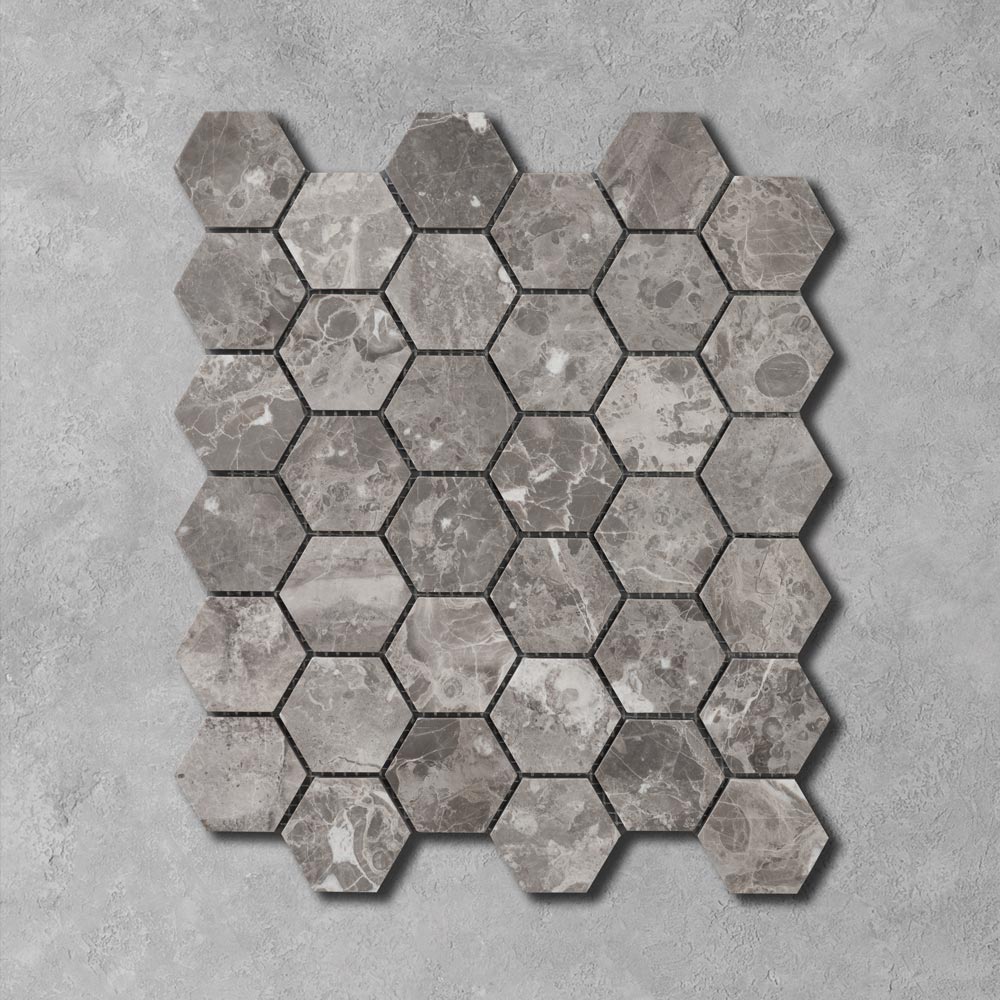 • Terra Grey Marble Hexagon Mosaic Tiles