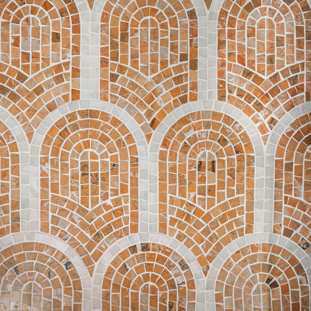 Rosso Calacatta Marble Framed Fan Mosaic