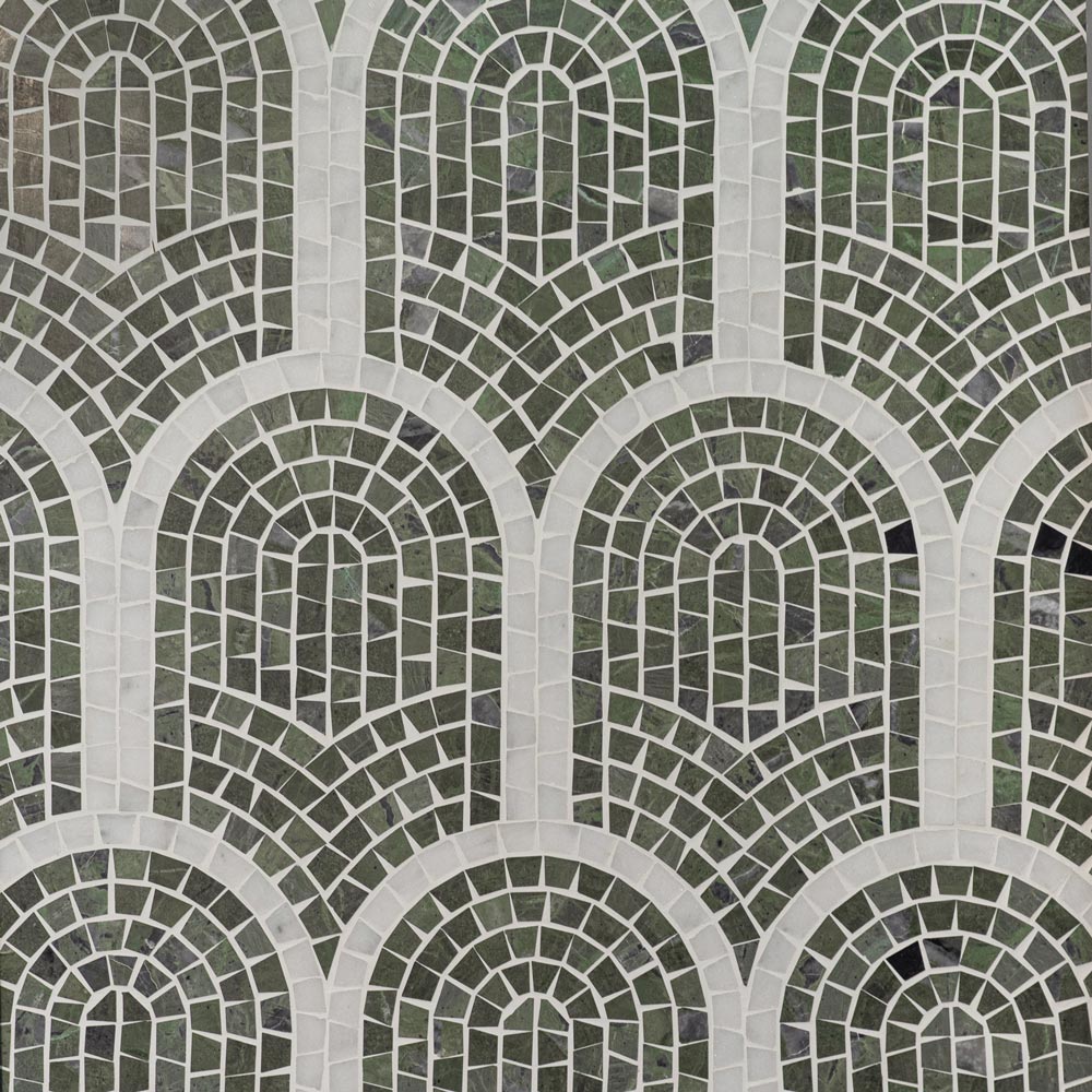 Verde Green & Calacatta Marble Half Fan Mosaic