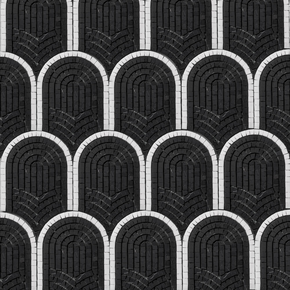 Nero Black Calacatta Marble Framed Fan Mosaic