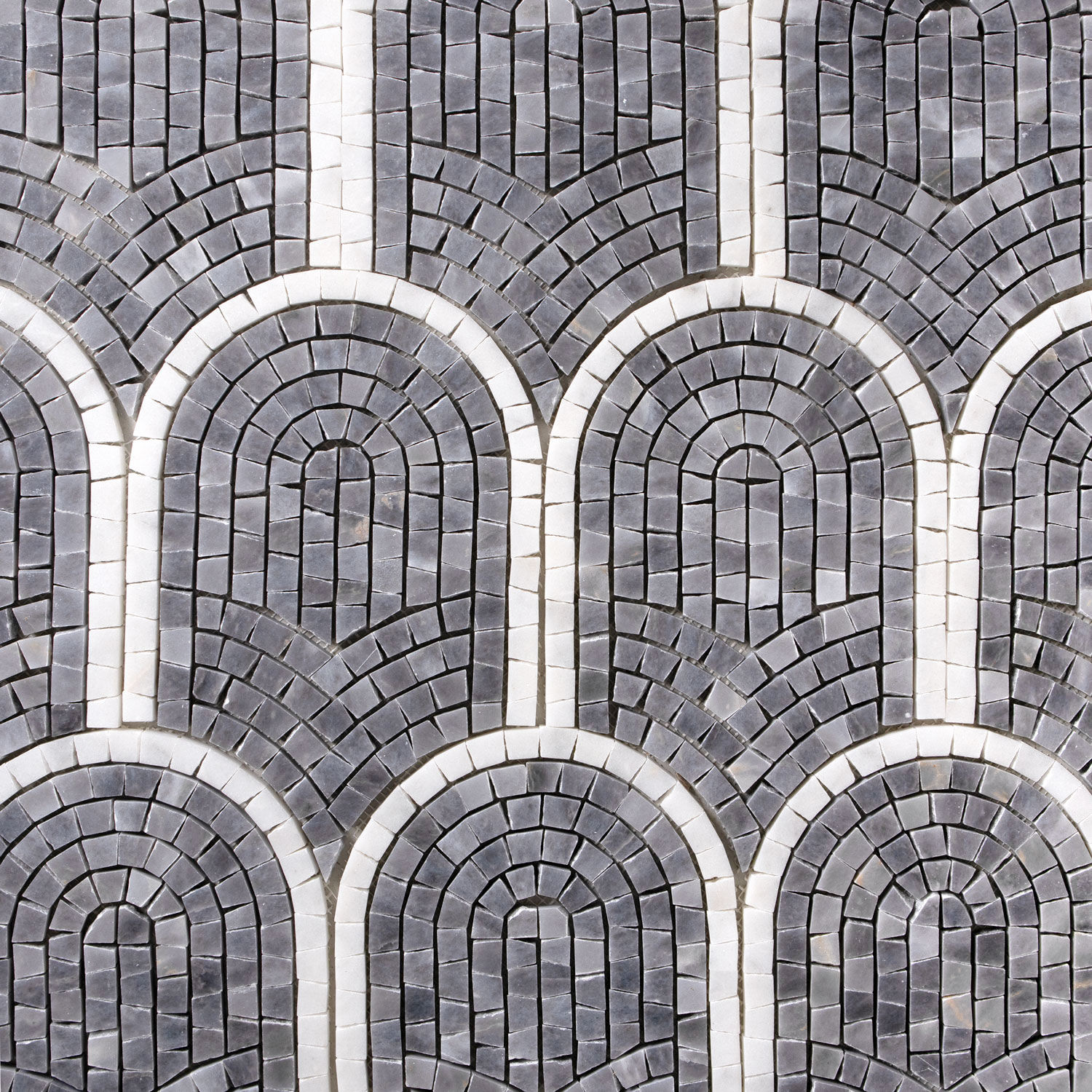 Latest addition to the small format marble mosaics, Calacatta white marble fan mosaic.
