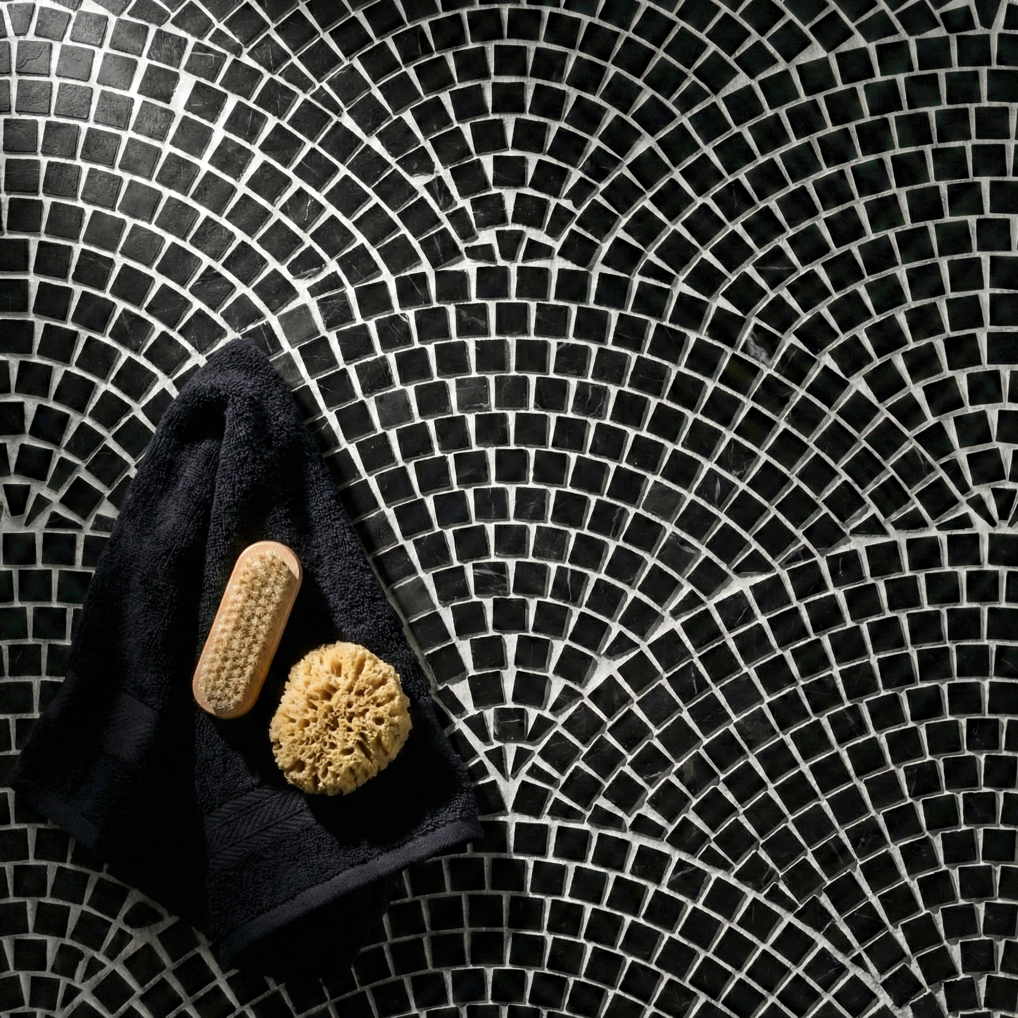 Nero Black Marble Fan Scallop Mosaic Tiles
