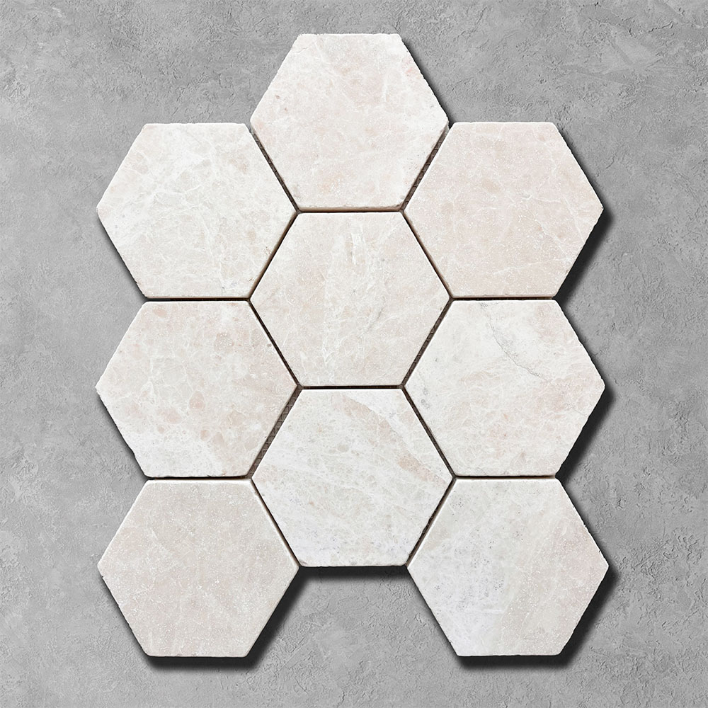 White emperador XL Tumbled Hexagon Marble Mosaic